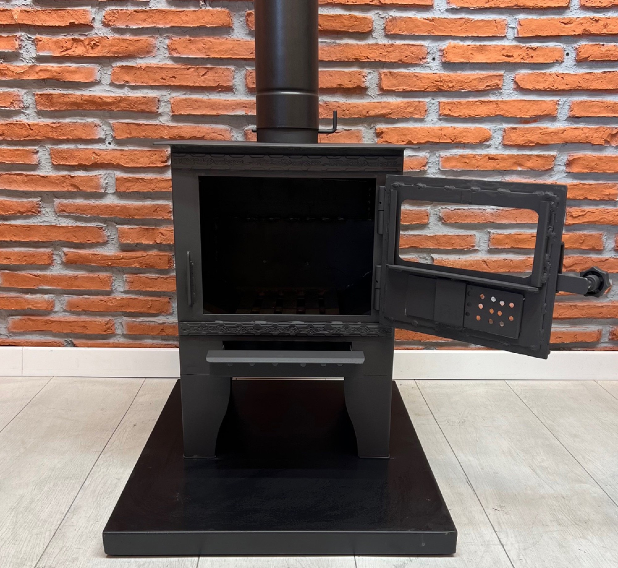 KALİTE VE FARKIMIZ İLE TANIŞIN Firmamızın 1986 yılından itibaren üretmiş olduğu kuzine ve şömineler muadillerinden ayrılarak daha kalın ve yüksek kalitede ki malzemeler ile üretilmektedir. Bu sayede ürünlerimiz daha uzun ömürlü ve dayanıklıdır. Kalitemiz, sizlere uzun vadede tasarruf ve güven sağlar. Toros Odunlu Şömine Soba: Doğal ve Verimli Isıtmanın Estetik Ürünü Odunlu şömine sobalar, hem geçmişten gelen geleneksel ısıtma yöntemlerini sürdüren hem de modern evlerde estetik bir hale gelen ısıtma araçlarıdır. Aynı zamanda doğal bir ortam yaratır ve evinize nostaljik bir atmosfer kazandırır. Odunlu şömine sobalar, elektrik ve doğal gaz gibi dış enerji kaynaklarına ihtiyaç duymadan doğrudan odun yakarak çalışan bir sistem sunar. Bu ürün sadece odun yakıtlıdır. Isı özellikleri doğadan alan bu sobalar, enerji maliyetlerini düşürme ve daha az zarar verme açısından da faydadır. Odunlu Şömine Sobanın Yapısı ve Çalışma Prensipleri Odunlu şömine sobalar, genellikle çelik ve kalın sac yapılabilir. Bu özellikler, ısının korunması ve uzun süreli kullanım açısından idealdir. Soba, odunun yanmasıyla ortaya çıkan ısının eve yayılmasını sağlar. Yanma işlemi, odunların ateş haznesine konulması ve hava akışının iletilmesiyle başlar. Yanma verimini artırmak için sobaların içinde havalandırma ve duman kontrol ünitesi bulunur. Bu sistemler, odunun verimli yanmasını sağlayarak daha az yakıtla daha fazla ısınmayı mümkün kılar. Sobaların ön kısmı camlıdır. Bu cam, hem yüksek sıcaklığa dayanıklı hem de temiz tutulduğunda odunların yandığını izleme keyfi sunar. Cam kapaklı odunlu şömine sobalar, sadece ısınmakla kalmaz; Aynı zamanda evinize dekoratif bir katkı sağlar. Ateşin altında küllük, yanma sırasında oluşan külün toplandığı yer. Küllük, düzenli olarak temizlenmeli ve her bölgedeki hava kataloğu kontrol edilmelidir. Bu tür sobalarda hava akımı ve yanma süreci yönetilirse, odun daha yavaş yanar ve daha uzun süreli ısı sağlar. NOT: KUZİNE TABLASI FİYATA DAHİL DEĞİLDİR. Tüm aksesuarlar ayrı olarak satılmaktadır. Menü - Ürünlerimiz - Diğer Ürünler kategorisinden altlık ,odunluk,maşa seti veya borular gibi ürünlerimizi inceleyebilir,sepetinize ekleyebilirsiniz. (Altlık ve odunluğu ürünün yanında yer alan ek ürün seçeneğinden de ekleyebilirsiniz.) Baca için kaç adet boru gerekli olacağının hesabını; baca deliği ile zemin(yer) arasındaki mesafeyi ölçüp soba yüksekliğini bu mesafeden çıkararak yapabilirsiniz.