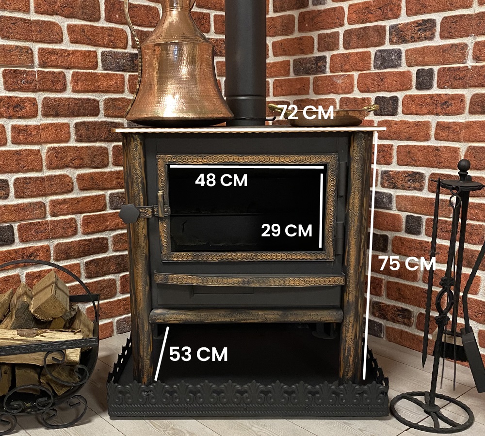 Darbeye karşı korunması gerekir.Üzerine odun düşmesi , kapağı çok sert kapatma veya herhangi bir darbe sonucu çatlayıp kırılabilir. Bu nedenle camlar garanti kapsamı dışındadır. Ateşlik içi çok geniş olduğundan dolayı büyük odunları rahatlıkla içine atabilirsiniz. Ateşlik altında olan çekmece küllüktür. Kül,döküm ızgaranın arasından bu küllüğe dökülmektedir. Küllüğün dışarıdan çıkarılıp takılması,ateş yanarken bile çekip külünü boşaltabilme imkanı sunar. Küllük haznesinde havalandırma bulunmaktadır. İlk yakışlarda küllük havalandırmasını açık konuma getirince içerideki ateş erken tutuşma sağlamaktadır. Kullanımı çok rahattır. Özel yanmaz ateş boyası ile boyanmıştır. Bu ürünümüzde de olduğu gibi tüm ürünlerimizde yakıt tasarrufu sağlayabilmeniz için uyku modu bulunmaktadır.Baca çıkışındaki bu ayarı ateş iyice tutuştuktan sonra kapatıp uyku moduna alabilirsiniz. Düzenli temizlik ve bakım işlemleri ürünleri, kullanım süresini artırarak maksimuma çıkar. Bakır Detay Şömine modelimiz, estetik görünümü ve fonksiyonel özellikleriyle yaşam alanınıza hem şıklık hem de pratiklik katacak şekilde tasarlanmıştır.