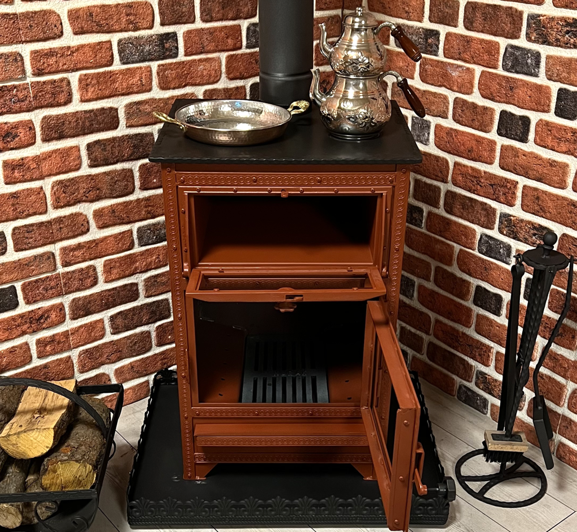 Akdeniz Serisi Turuncu Lüks Fırınlı Şömine KALİTE VE FARKIMIZ İLE TANIŞIN Firmamızın 1986 yılından itibaren üretmiş olduğu kuzine ve şömineler muadillerinden ayrılarak daha kalın ve yüksek kalitede ki malzemeler ile üretilmektedir. Bu sayede ürünlerimiz daha uzun ömürlü ve dayanıklıdır. Kalitemiz, sizlere uzun vadede tasarruf ve güven sağlar. Turuncu Renkli Lüks Fırınlı Şömine: Sıcaklığı ve Enerjiyi Evlerinize Taşıyor Turuncu renkli lüks fırınlı şöminemiz, Akdeniz'in sıcaklığını, tazeliğini ve coşkusunu evinize getiriyor. Bu canlı renk seçeneğiyle, eviniz Akdeniz’in eşsiz güzelliklerini yansıtıyor. Zarafet ve dayanıklılığı bir araya getiren bu şömine, iç mekanınızı adeta bir Akdeniz rüyasına dönüştürüyor. Sıcaklığın ve Stilin Buluşması: Turuncu renkli şöminemiz, kalın demir çelik malzeme ve döküm iç ateşlik ızgarasıyla özenle üretilmiştir. Bu özel tasarım, şöminenin sağlamlığını ve dayanıklılığını en üst seviyeye taşır. İçinde kullanılan özel ateş camı, ateşin dansını ve ışıltısını evinizin her köşesine taşır. Kullanım Kolaylığı ve Canlı Estetik: Çekmeceli küllük sistemi sayesinde temizlik işlemleri son derece pratiktir. Turuncu renkli şöminemiz, iç mekanınıza canlılık ve enerji katarken, uyku modu özelliği ve özel fincan kapaklarıyla tasarruf yapmanızı sağlar. Hem sıcak içeceklerinizi ısıtabilir hem de lezzetli yemekler hazırlayabilirsiniz. Paslanmaya Karşı Ekstra Koruma: Şöminemiz, özel olarak tasarlanmış yanmaz turuncu renkli ateş boyası ile kaplanmıştır. Bu özel boya, şöminenizin uzun yıllar boyunca ilk günkü gibi parlak ve paslanmaz kalmasını sağlar. Turuncu renk, iç mekanınıza enerji dolu bir atmosfer katarken, şömineniz dekorasyonunuzun vazgeçilmezi olacaktır. Sonuç: Turuncu renkli lüks fırınlı şöminemiz, sıcaklığı, enerjiyi ve coşkuyu evinize taşır. Hem estetik hem de fonksiyonellik açısından mükemmel olan bu şömine, iç mekanınızı dönüştürmek ve enerji dolu anlar yaşamak isteyenler için ideal bir tercihtir. Evinizde sıcak ve pozitif bir atmosfer yaratmak için bu canlı turuncu şömineyle adeta bir enerji patlaması yaşayacaksınız! Tüm ürünlerimizde yakıt tasarrufu sağlamanız için uyutma özelliği mevcuttur. NOT: KUZİNE TABLASI FİYATA DAHİL DEĞİLDİR. Tüm aksesuarlar ayrı olarak satılmaktadır. Menü - Ürünlerimiz - Diğer Ürünler kategorisinden altlık ,odunluk,maşa seti veya borular gibi ürünlerimizi inceleyebilir,sepetinize ekleyebilirsiniz. (Altlık ve odunluğu ürünün yanında yer alan ek ürün seçeneğinden de ekleyebilirsiniz.) Baca için kaç adet boru gerekli olacağının hesabını; baca deliği ile zemin(yer) arasındaki mesafeyi ölçüp soba yüksekliğini bu mesafeden çıkararak yapabilirsiniz. Ürünle beraber 1 tüp sprey boya hediyedir. Renkli ürünlerde 10 gün kadar termin süresi vardır.